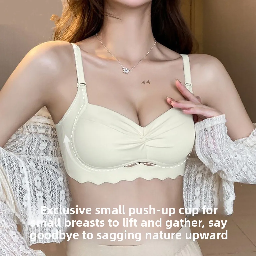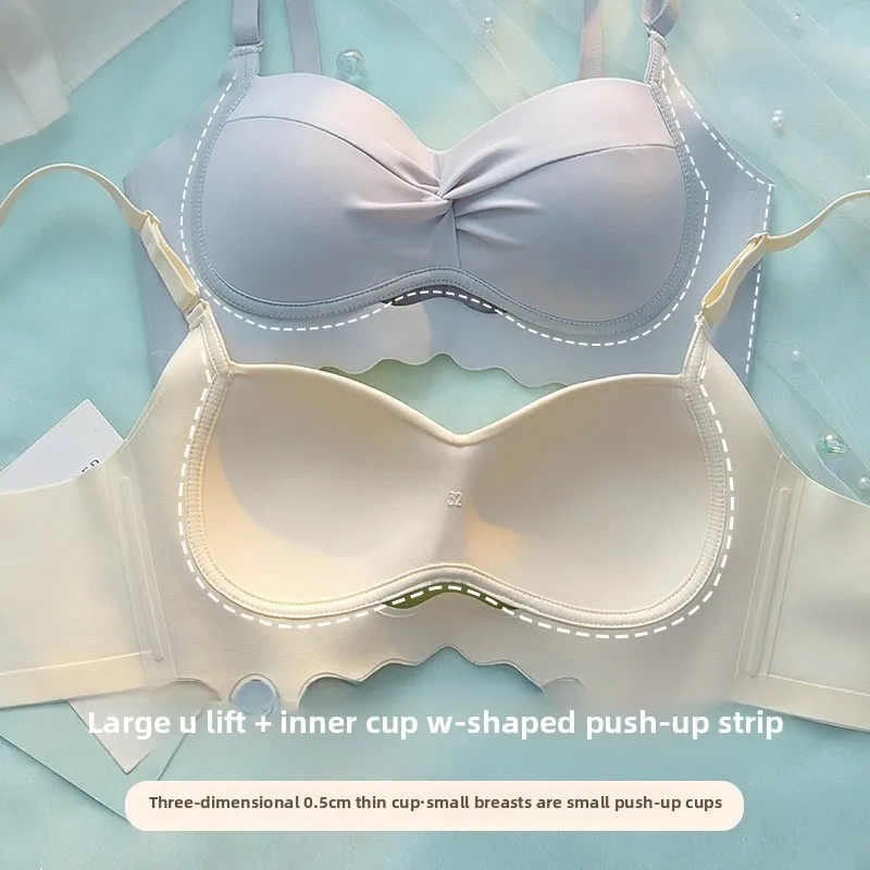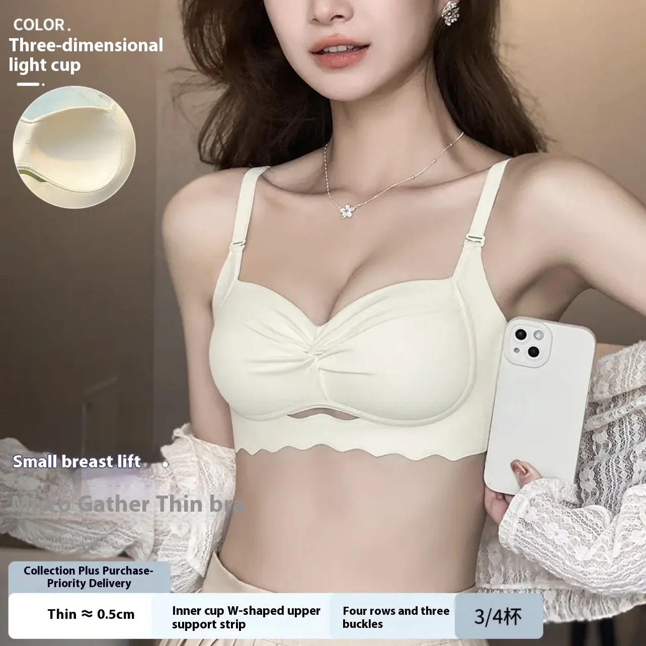 Thin White Set for Girls Summer Anti-Sagging Wireless Breast Collection with Side Gathering Small Chest Logo on Cup Seamless Bra
